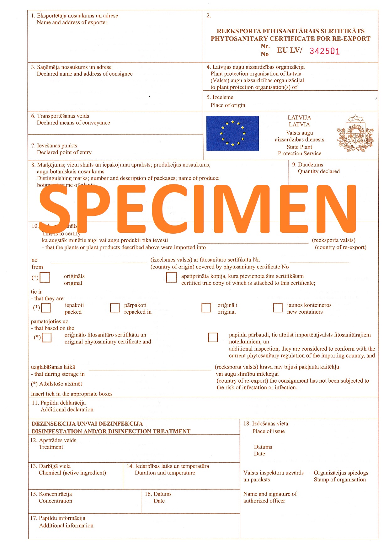 The export of plants and plant products from Latvia to third countries requires a phytosanitary certificate for export or a phytosanitary certificate for re-export certifying that the plants or plant products comply with the phytosanitary requirements of the importing country.