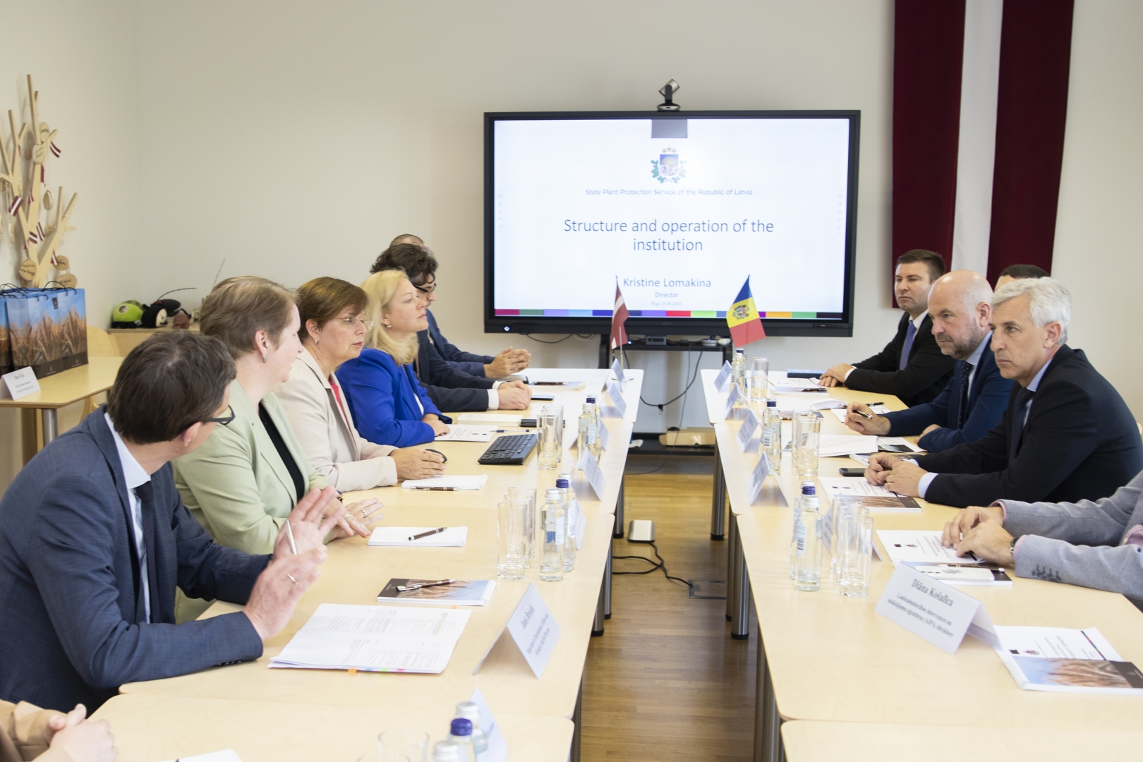 On Wednesday, 5 June, the State Plant Protection Service was visited by the Minister of Agriculture and Food Industry of Moldova Vladimir Bolea, the Ambassador of Moldova to Latvia Andrian Roşa, the State Secretary of the Ministry of Agriculture and Food Industry Iurie Skripnic, the Deputy Director General of the State Agency for Food Safety (ANSA) Alexandr Manciu and the EU High Level Adviser on Agri-Food Sector Development at the EU High Level Advisers' Mission to Moldova Rolandas Taraškevičius.