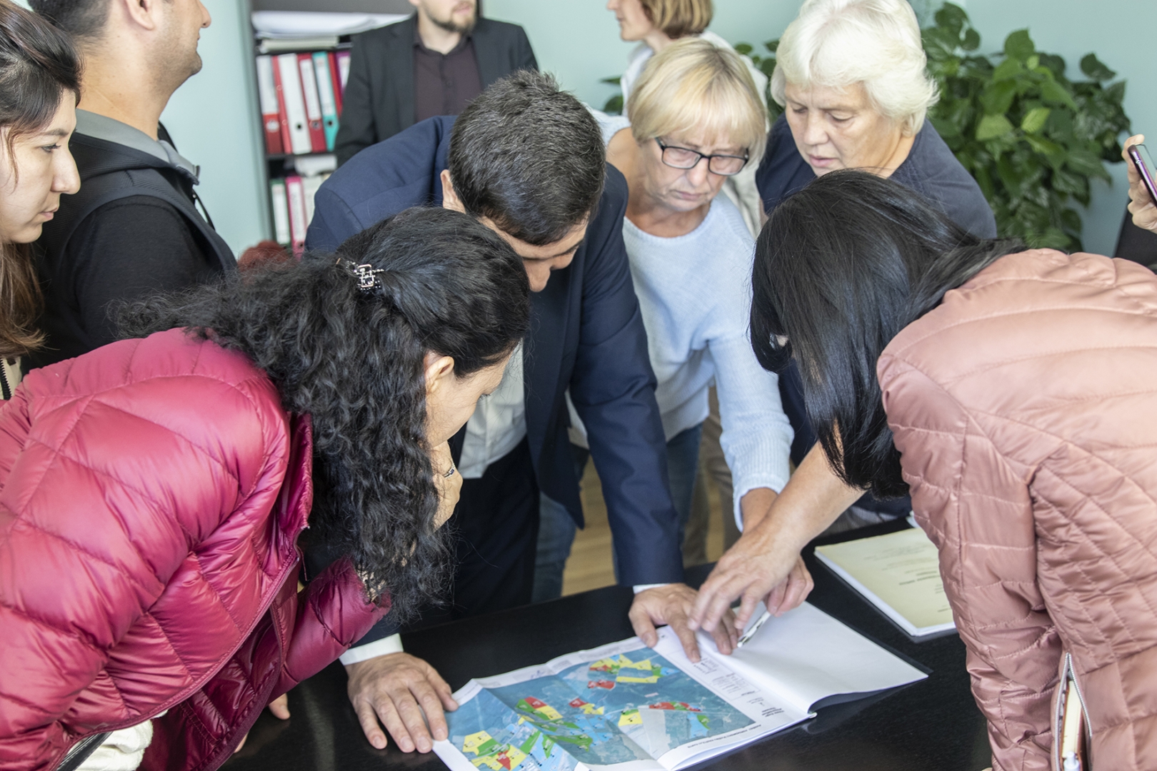 eksperti aplūko augšņu agroķīmiskās izpētes materiālu