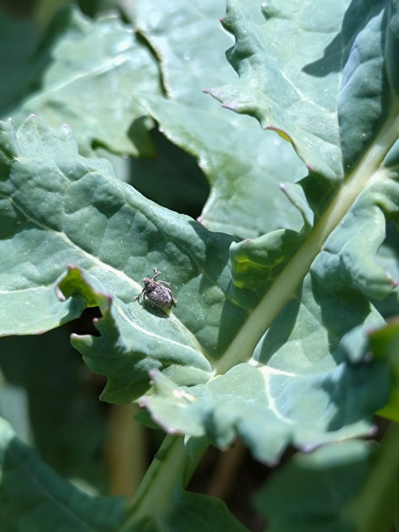 Krustziežu stublāju smecernieks uz rapša lapas. Foto: D. Ozoliņa (VAAD)