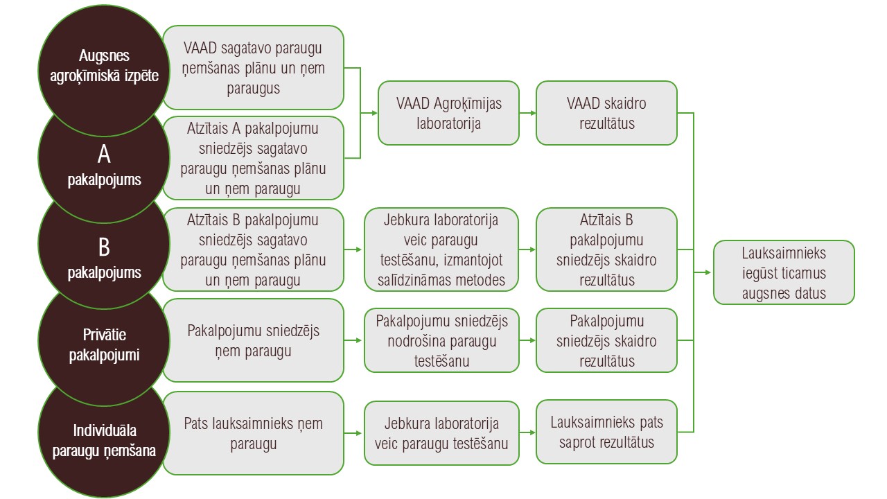 VAAD iepazinies ar Igaunijas labo praksi augsnes izpētes jomā un pielāgojis to Latvijas situācijai, sniedzot plašākas iespējas iesaistīties uzņēmējiem. 2023. gadā Latvijā uzlabots normatīvais regulējums – izdoti Ministru kabineta 2023. gada 11. aprīļa noteikumi Nr. 184 "Kārtība, kādā iegūst un apkopo informāciju par lauksaimniecībā izmantojamās zemes auglības līmeni un tā pārmaiņām, kā arī atzīst augšņu agroķīmiskās izpētes pakalpojumu sniedzējus", kas paralēli esošajai augsnes agroķīmiskajai izpētei un individuālajai paraugu ņemšanai izveido kārtību, kā kļūt par atzītu pakalpojumu sniedzēju. Atzītais A pakalpojumu sniedzējs, līdzīgi kā Igaunijā, ņem paraugus, bet VAAD nodrošina atlikušo procesu – paraugu testēšanu, iegūto datu apstrādi un skaidrošanu, kā arī sniedz tehnisku atbalstu paraugu ņemšanā, tai skaitā mobilo lietotni. Atzītais B pakalpojumu sniedzējs pats nodrošina visu procesu. Šie noteikumi paver lauksaimniekiem vairāk iespēju iegūt ticamus datus par augsni. Kā arī kļūšana par atzīto A pakalpojumu sniedzēju ir iespēja plašākai sabiedrībai, tai skaitā pašiem lauksaimniekiem, iesaistīties ticamu augsnes datu iegūšanas procesā tiešā veidā.