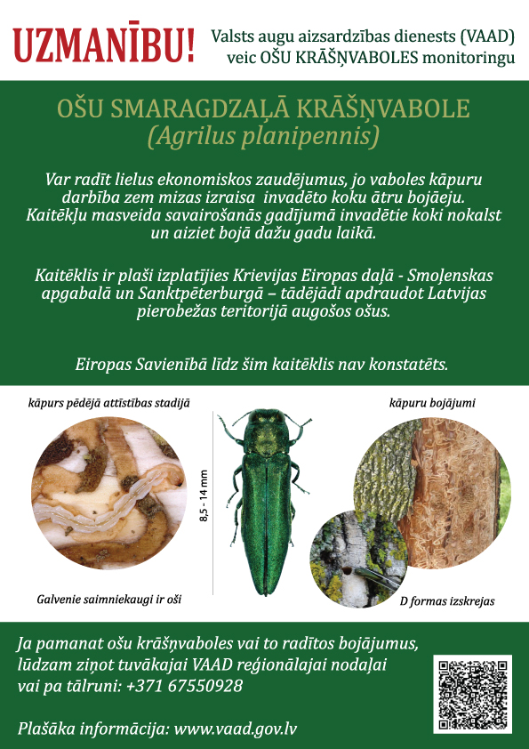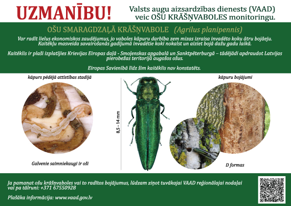 Novērojot kaitēkļa klātbūtnes pazīmes uz ošiem jebkurā Latvijas vietā, aicinām iedzīvotājus nekavējoties informēt VAAD darbiniekus tuvākajā reģionālajā nodaļā. Ātra un operatīva rīcība palīdzēs savlaicīgi konstatēt un ierobežot kaitēkli.